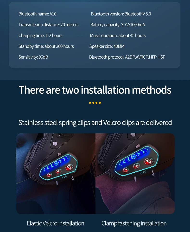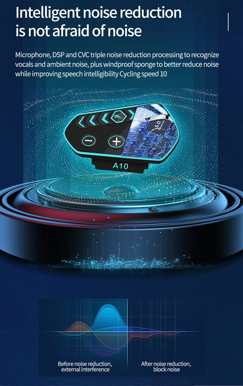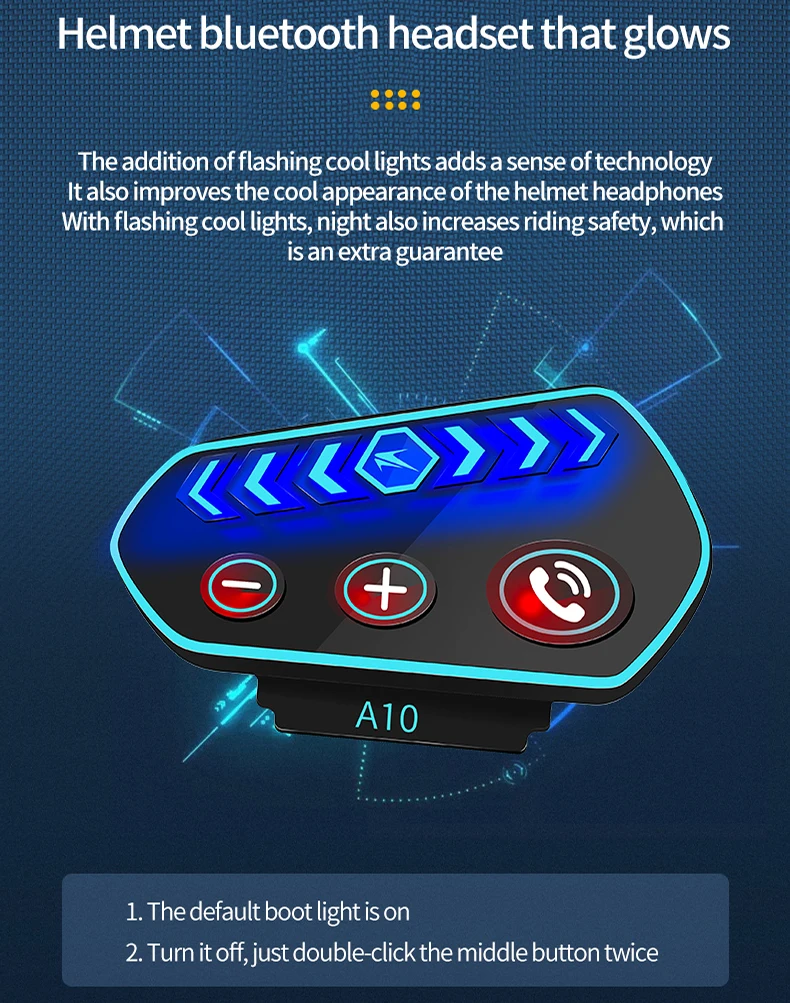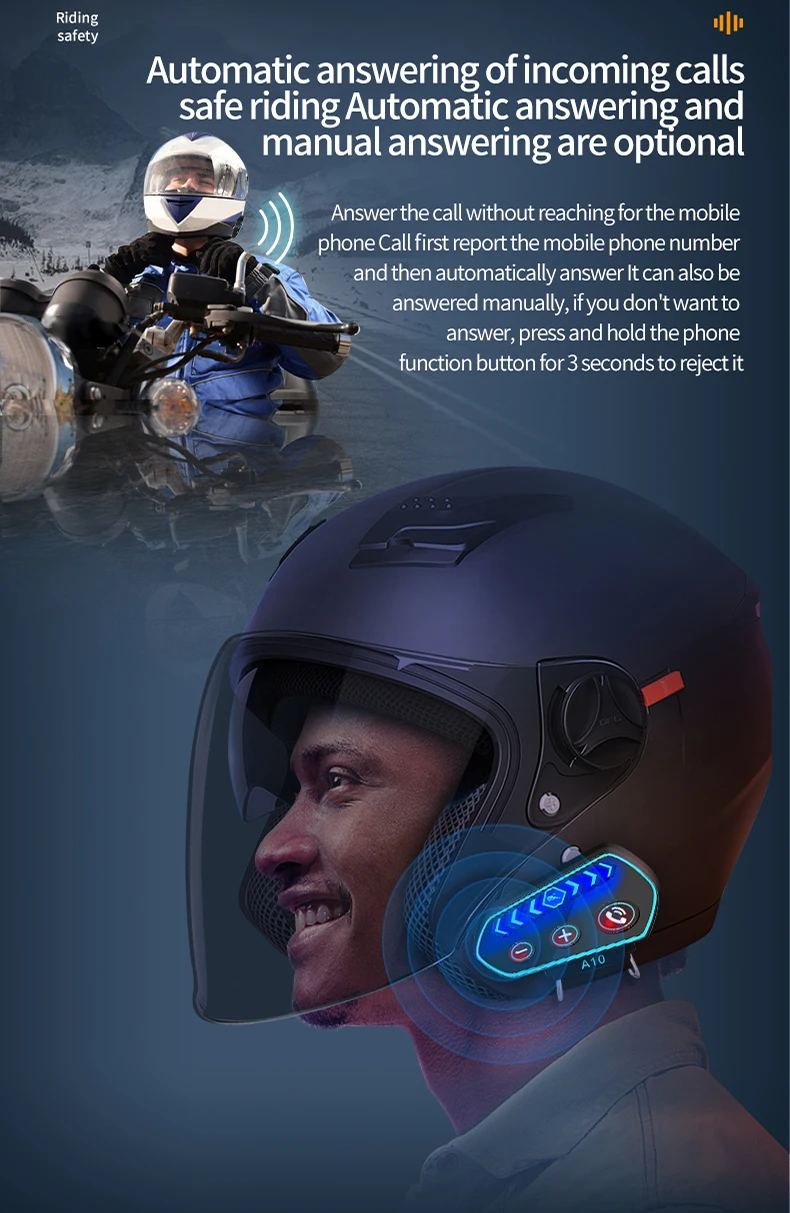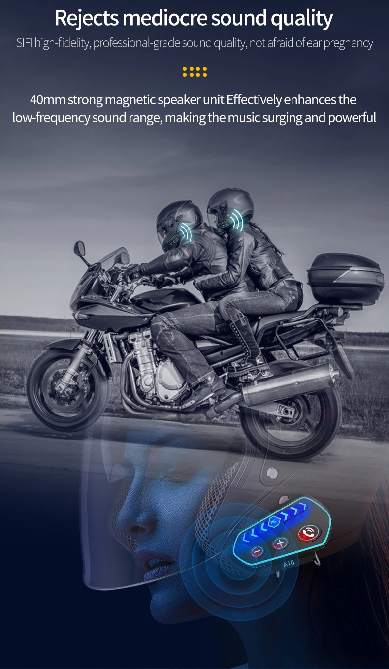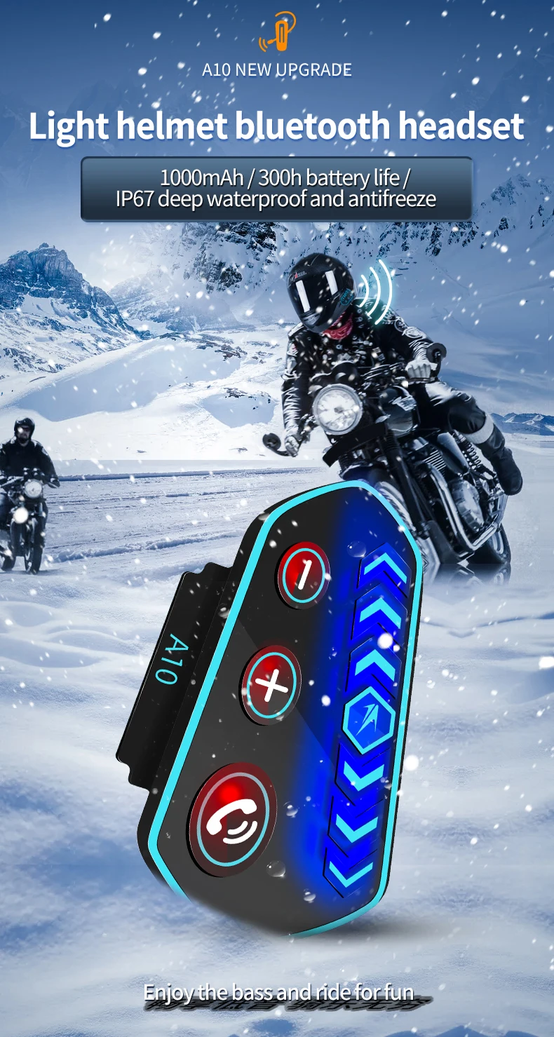 A10 Motorcycle Helmet Bluetooth Headset Wireless V5.0 Waterproof Handsfree Call Music Earphone 1000Mah Riders Moto GPS Headphone